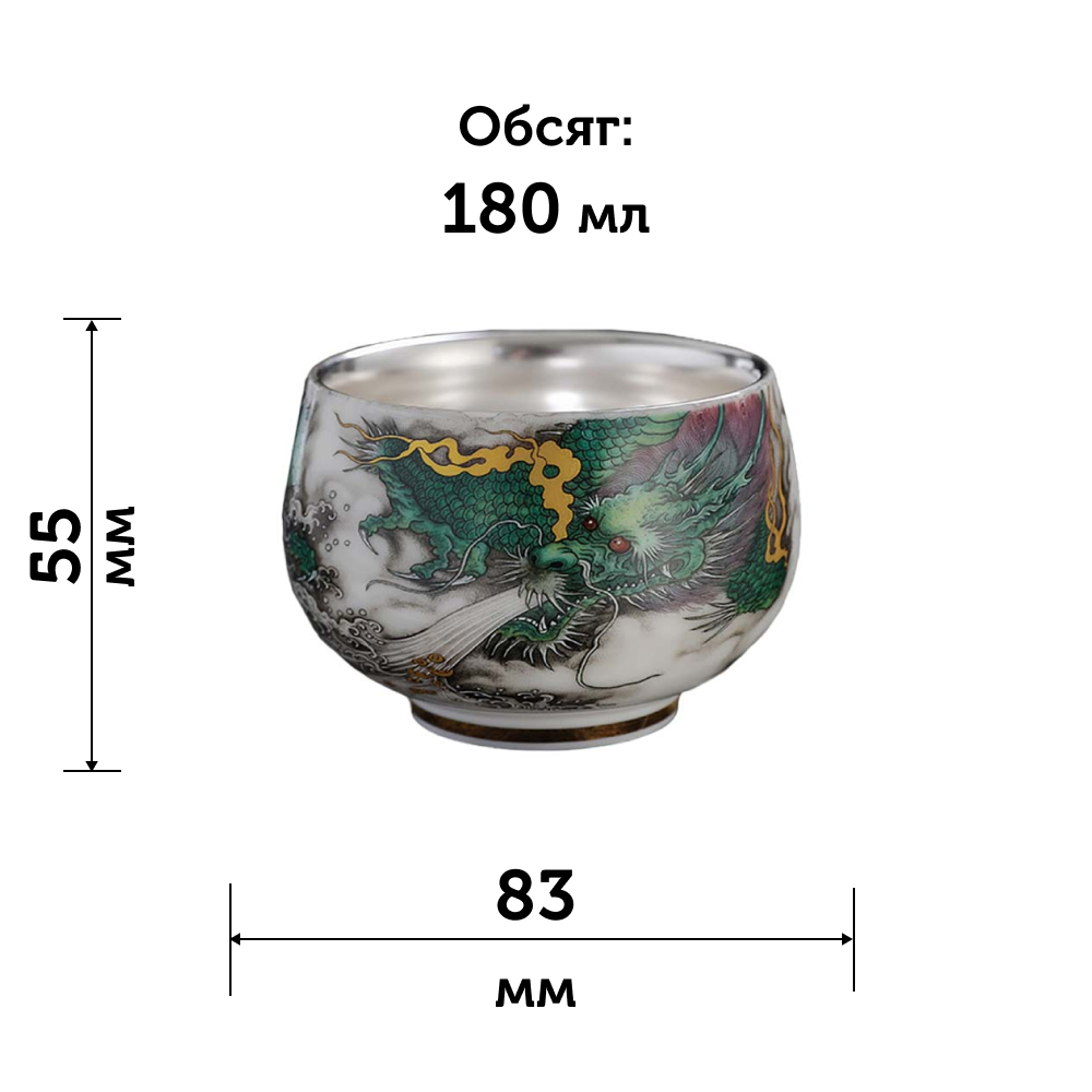 Порцелянова піала, покрита сріблом 999 проби.